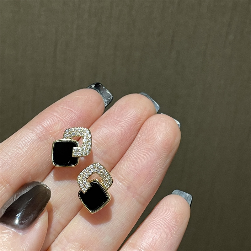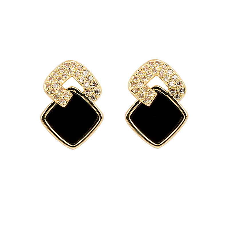 Versatile Minimalist Black Cubic Zirconia Square Stud Earrings